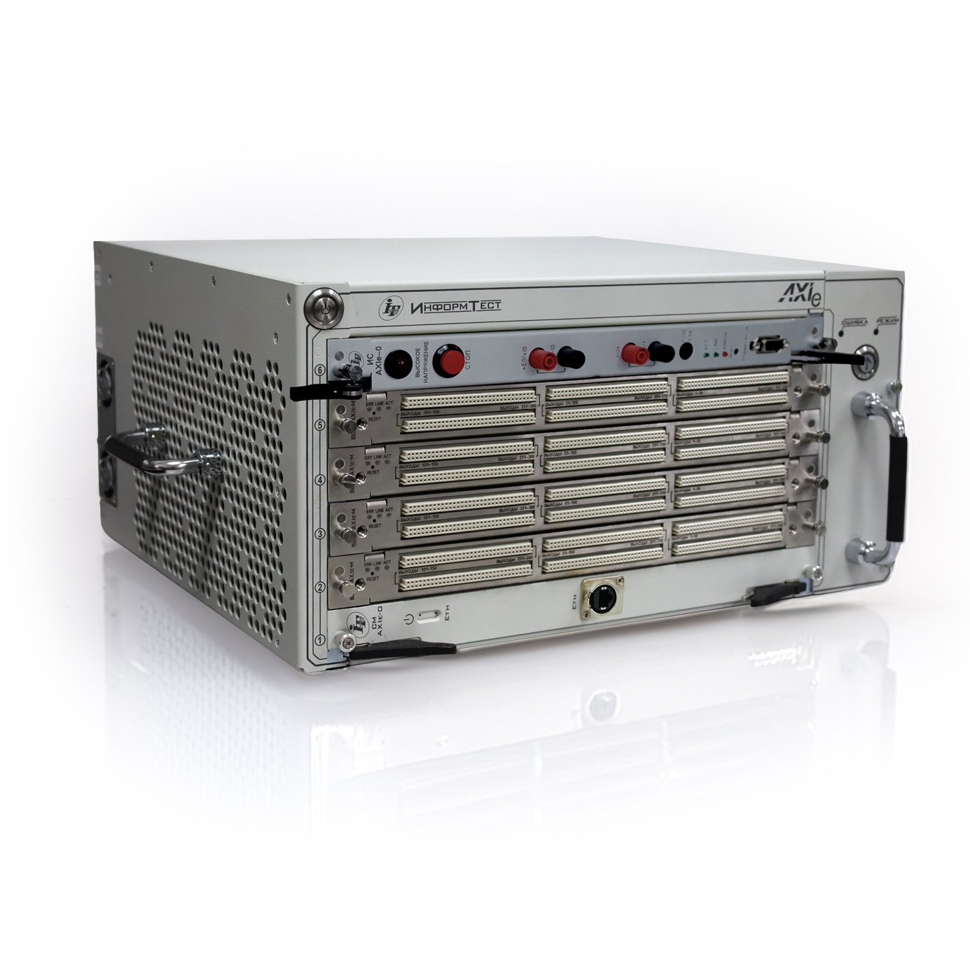 Основными исполнительными модулями, входящими в состав ТЕСТ-9110-AXIe «Полёт» являются:- Коммутатор-измеритель К-576-ИС AXIe-0 , который сочетает в себе функции матричного коммутатора и измерителя электрических параметров.